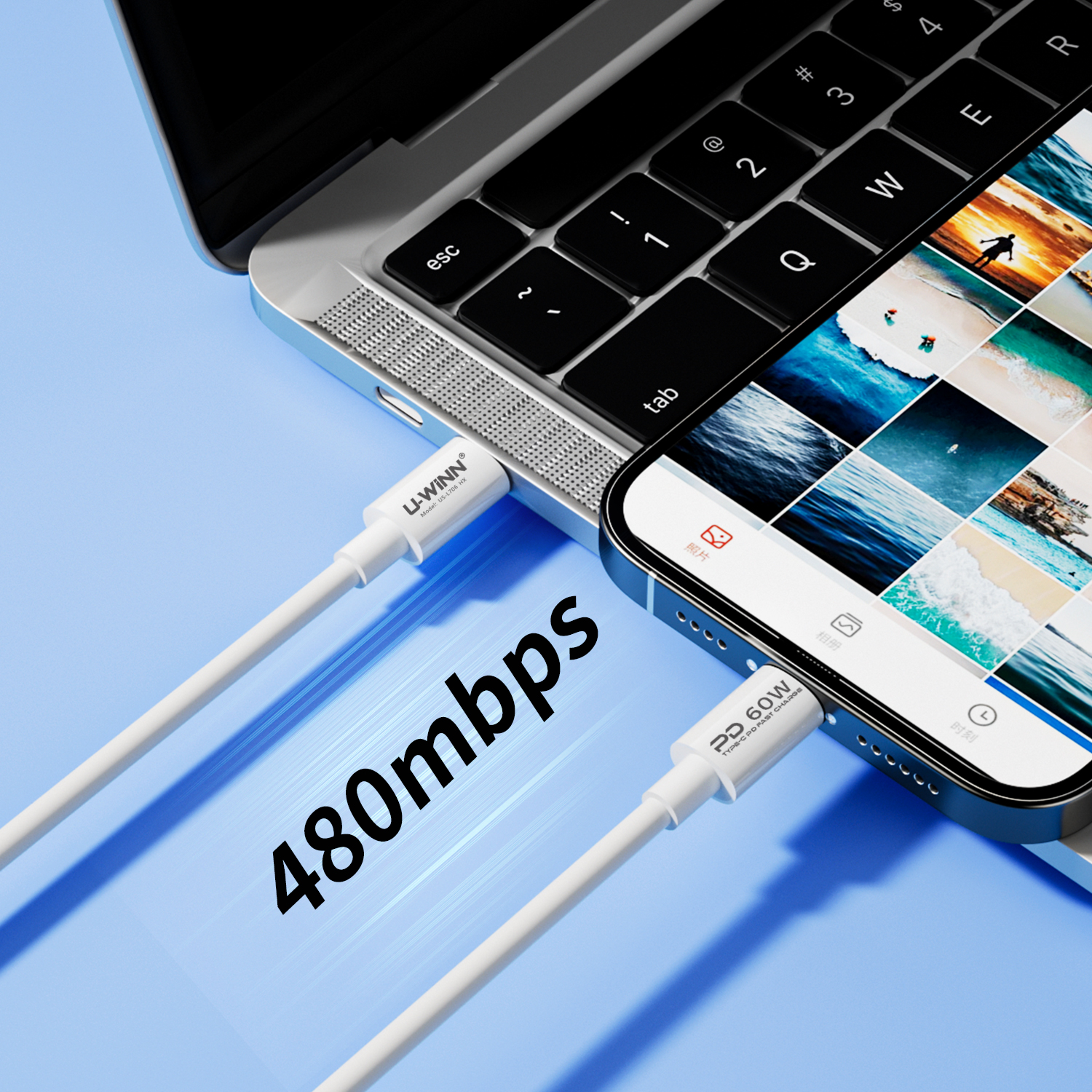 PD 60W charging power for fast and efficient charging